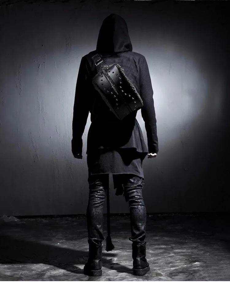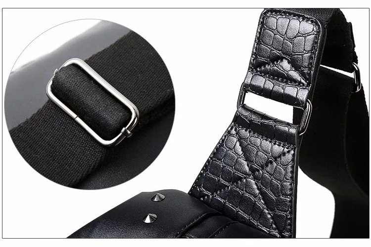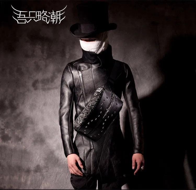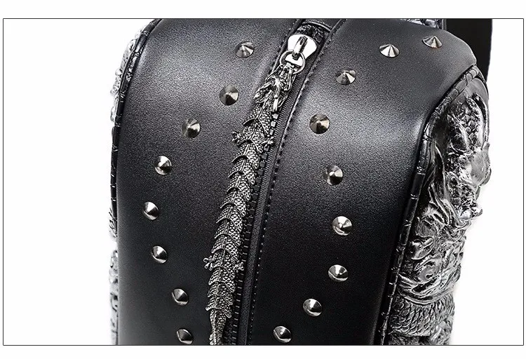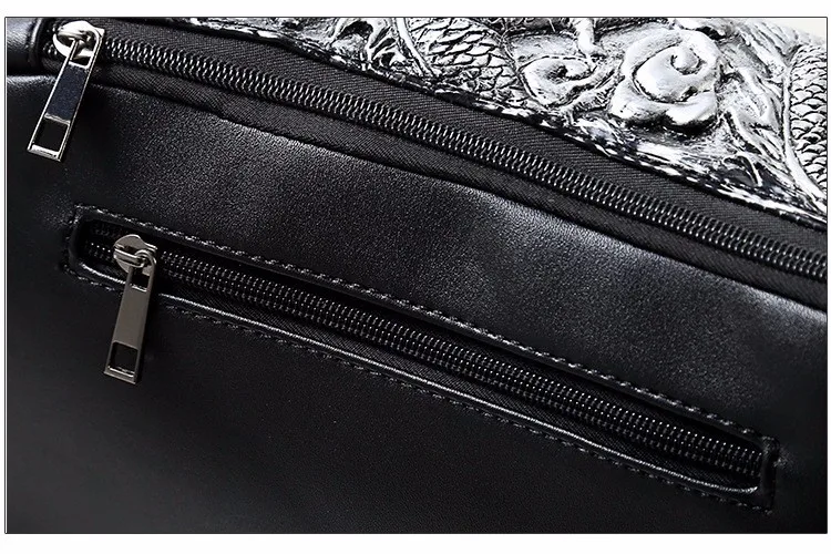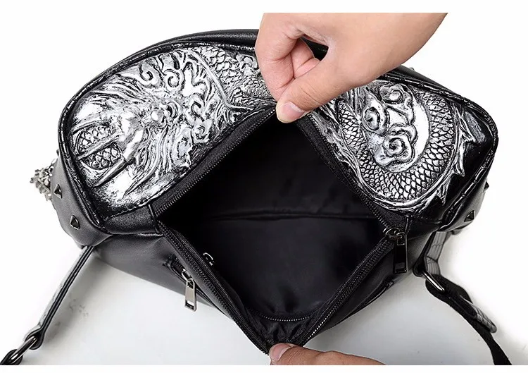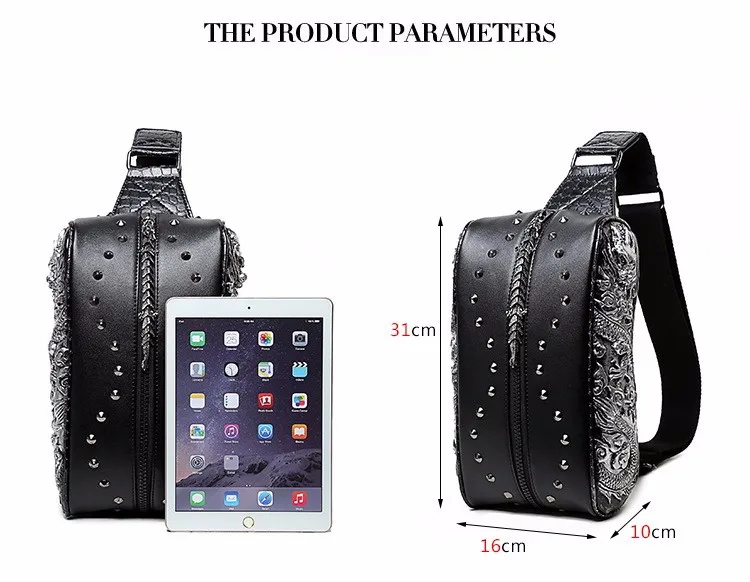 ホット販売3dドラゴンデザインウエストパックファッションリベット胸バッグpuレザー男のバッグヴィンテージ良い品質レザーバッグ
