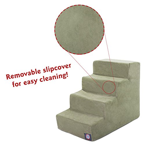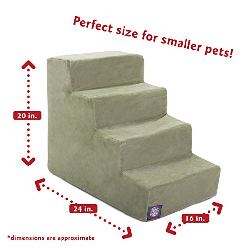 Studio : Majestic Pet Publisher : Majestic Pet Binding : Misc. Product Description Majestic Pet Products 4 Step Pet Stairs are perfect for older dogs and cats suffering from arthritis, painful joints, overweight bodies or hip dysplasia. Give your pet back their independence and allow them to easily access couches, ledges hard to reach spaces that they struggle to climb. Features a machine washable slipcover to easily wash off dirt, stains, spills, etc. You can quickly and easily install it. Assembly cushion fittings offer enough stabilization to keep your pet from injury itself. Help dogs and cats have fun indoors, especially on rainy and snowy days, and accompany your pet growth happily. Designed and assembled in the USA with imported materials. Highest quality dog / cat stair is guaranteed. Dimensions: 24 in. x 16 in. x 20 in. (L x W x H) Weight: 7.4 lbs Cover Material: Polyester Stairs Material: PP Package 1 x Majestic Pet Dog / Cat Steps 1 x Slipcover