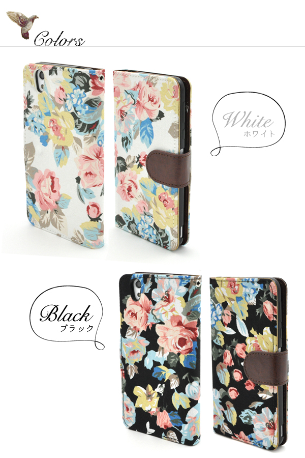 外側は花柄、内側は落ち着いたレザーデザインです。
