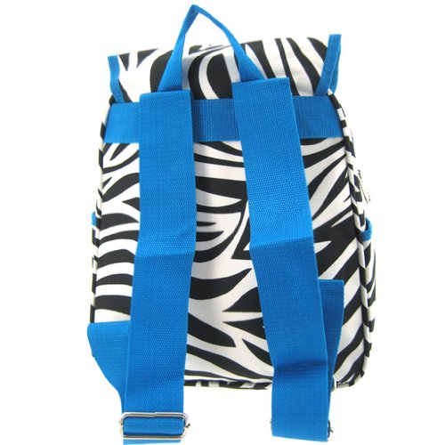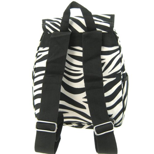Womens 13" Zebra Print School Travel Backpack Bag w/ Pink Trim (Black & White)