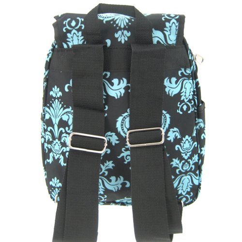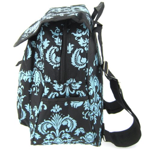 Womens 13" Damask School Travel Backpack Bag (Black & Blue)