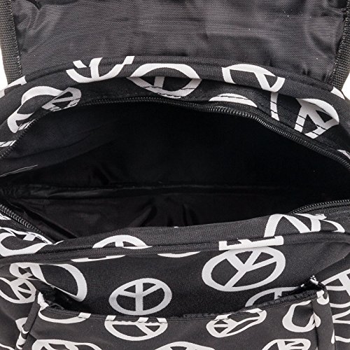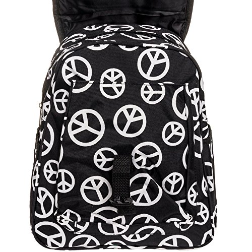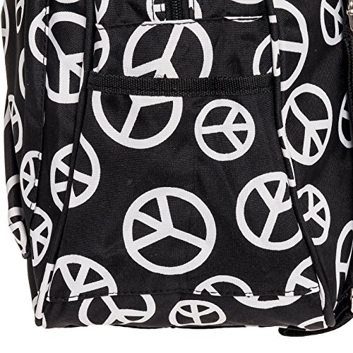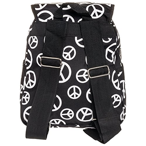 Womens 13" Peace Print School Travel Backpack Bag (Black & White)