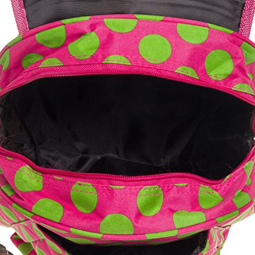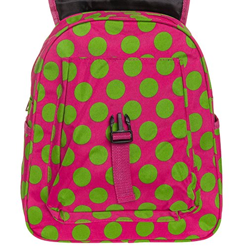 Womens 13" Polka Dot School Travel Backpack Bag (Fuchsia & Lime)