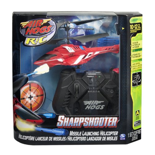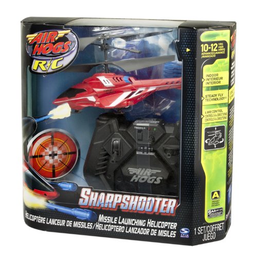 - Feature : Prepare for sky-high battles with the blue Air Hogs R/C Sharp Shooter Helicopter / This awesome remote control chopper has built-in firing missile weapons to fire six missiles at your target at the touch of a button / Fly Multiple Sharp Shooters in the Same Room with 2 Frequencies / With Steady Flight and Tail-Lock Technology, this 65 inches long Sharp Shooter can be piloted left, right, up and down with precision and it'll even hover in place / Included are 1 Sharp Shooter, 6 Missiles, 2 Targets, 1 Controller/Charger and 1 Instruction Sheet