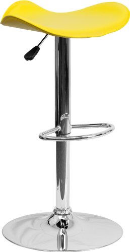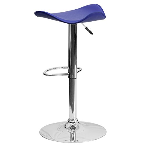 -. Feature : Height-adjustable swiveling saddle-seat stool with gas lift / Dimensions: 18.25W x 17D x 24.75-33.25H in. / Seat dimensions: 17 in. / Vinyl upholstered seat in a wide variety of color options / Polished chrome disk base with built-in footrest