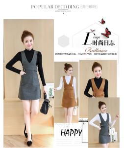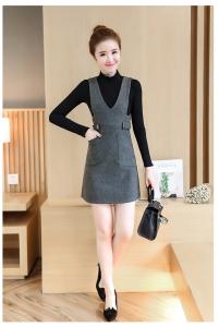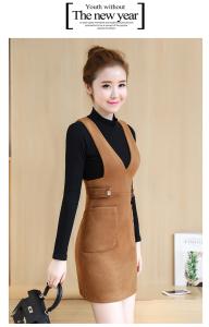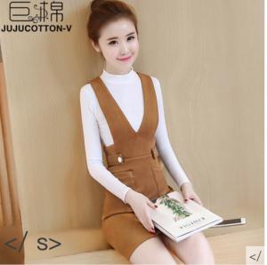 ミニワンピース セット 長袖 タイト トップス タイトミニワンピ サスペ付き ジャンパースカート