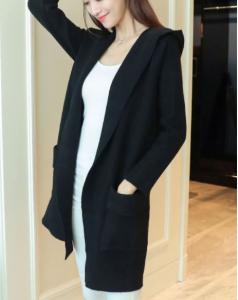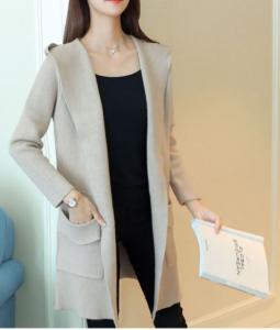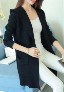 フードのカジュアルさ、大きめな襟と美ラインがエレガントさをかもしだしていますよね♪