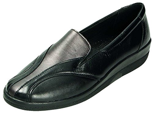 Product DescriptionDocComfort womens L.Slipper black wide G made of Anilinleather/Strech, removable leather footbed0