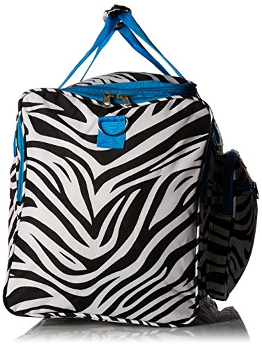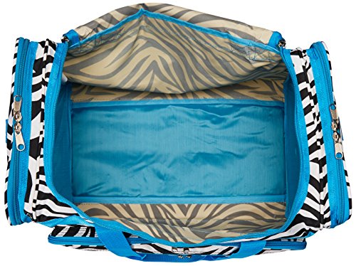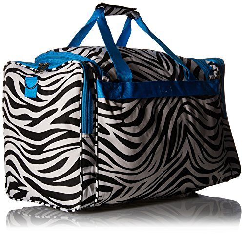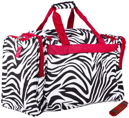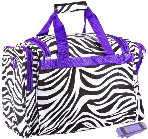 -. Binding : Apparel -. Brand : World Traveler -. Department : unisex-adult -. Feature : 600d polyester / Two front zipper pockets and 2 side pockets / Silver pewter hardware, detachable and adjustable shoulder strap / Dimensions: 22 inch l x 11 inch w x 12 inch h - 2.4 lb. / 22x10x11 -. Label : World Traveler -. Manufacturer : World Traveler -. Model : 81T22-163 -. PackageQuantity : 1 -. ProductGroup : Apparel -. ProductTypeName : LAGE -. Publisher : World Traveler -. Size : One Size -. Studio : World Traveler -. Title : World Traveler Zebra 22-Inch Travel Duffle Bag