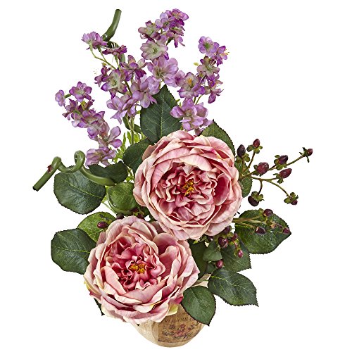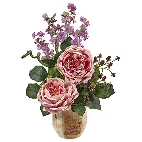 Nearly Natural 1447-PK Large Rose & Dancing Daisy in Wooden Pot