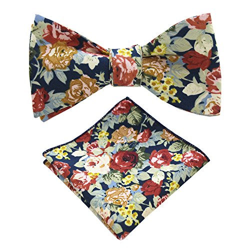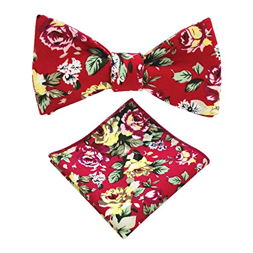 | (JEMYGINS)/Accessories/Ties/DIRECT FROM USA/JEMYGINS Cotton Floral Self Tie Bow Tie and Pocket Square Set for Men |