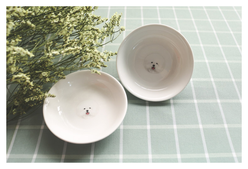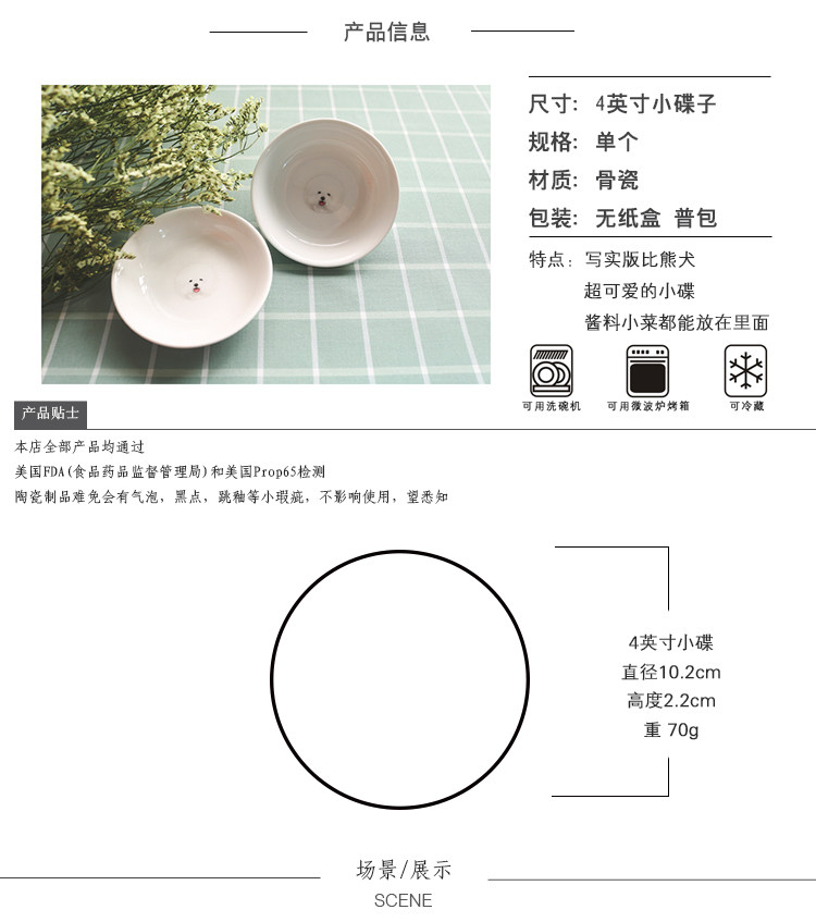 萌宠比熊系列家用陶瓷小碟迷你圆形小盘酱料碟子调料碟可爱小味碟