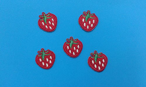 5 small pieces RED STRAWBERRY Iron On Patch Felt Fabric Applique Fruit Food Motif Children Decal 0.9 x 0.8 inches (2.3 x 2 cm)