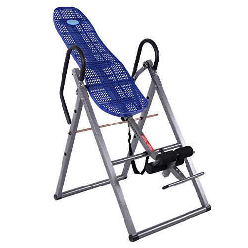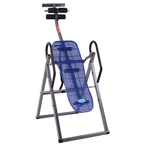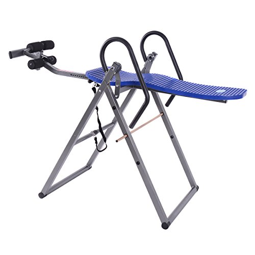 Studio : MTN Gearsmith Publisher : MTN Gearsmith Binding : Misc. Product Description Description This is our inversion table. An inversion table is a gravitational device that will help you achieve this by placing you in the required "inverted" state. With this inversion table, you can relieve the stress on your lower back, and relieve pressure on the discs and nerve roots. With this heavy-duty table, you can increase blood flow to your lower spine, increase body flexibility. Your discs will recover lost moisture and to return to their original shape. Feature High quality and brand new Heavy-Duty Construction And Steel Frame Improves Blood Circulation And Posture Decompresses Spinal Discs Reduces Back Pain Full 180 Degree Inversion Increases Body Flexibility Table Folds For Easy Storage Fights compression fatigue Eliminates back neck pain Easy To Grip Handles For Safety And Support Specifications Color: Blue Material: ABS Product Weight: 49lbs Product Size: 57" x 33.4" Wx 58.3" Pad size: 16.3" W x 43.7" L Adjustable user heights: 4.8' - 6.5' User Weight: 330lbs Max Product Include: 1 x Inversion Table (Need to be assembled) 0
