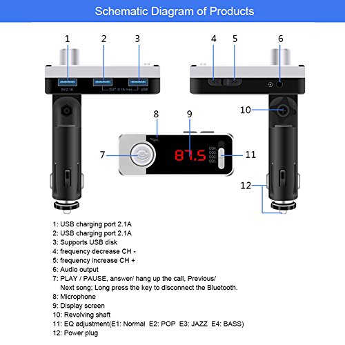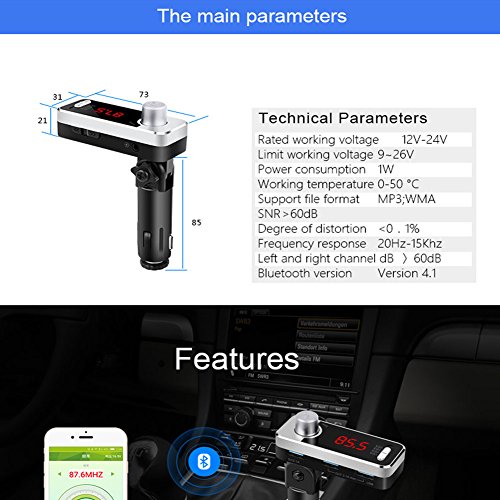 - ❤[ Hands free Talking ] through the built-in microphone of the fm transmitter for car, hands free talking will be realized. Echo cancellation and noise suppression technology get calling voice clearer, microphone effective distance is 0.5 to 2m