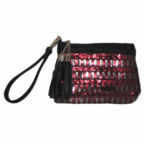 Detachable wristlet and cross-body strap. Zip top closure.