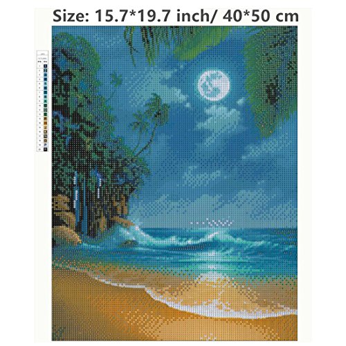 DIY 5D Diamond Painting Kit, Full Diamond Seaside Moon Beach Embroidery Rhinestone Cross Stitch Arts Craft Supply for Home Wall Decor
