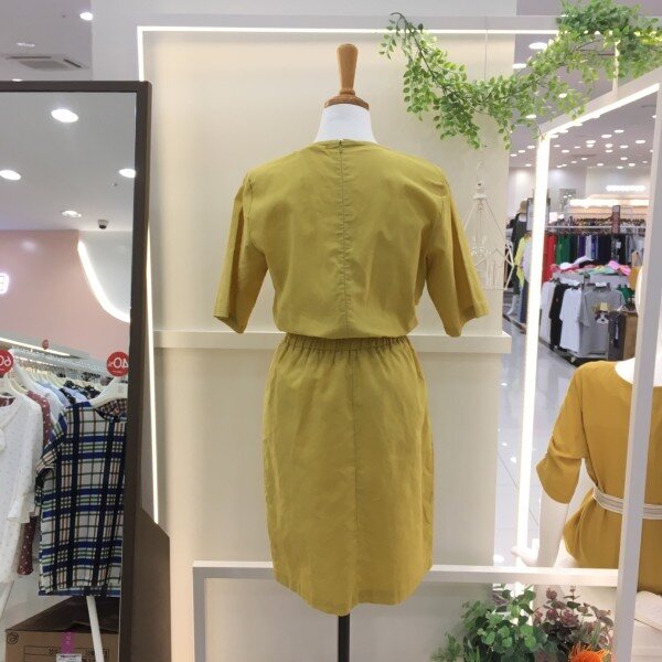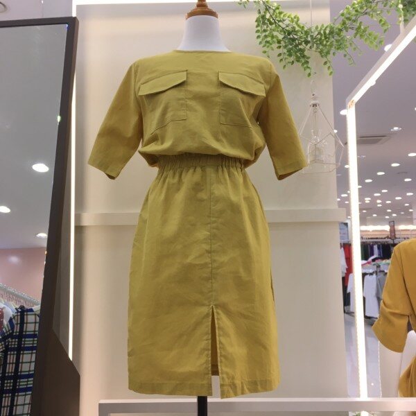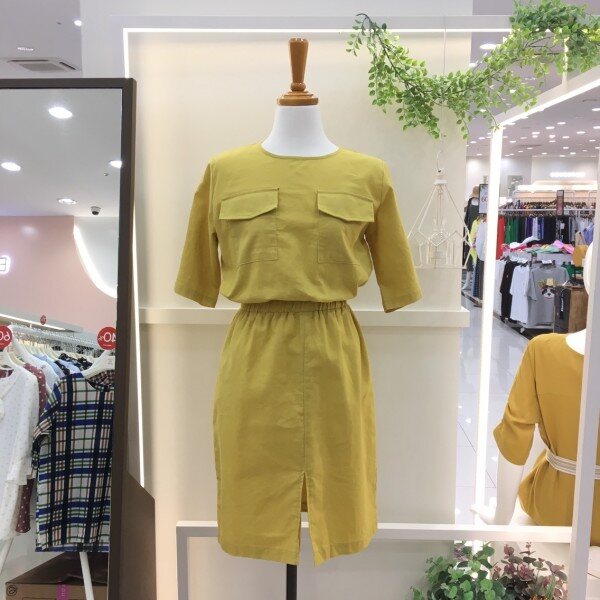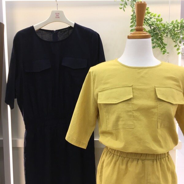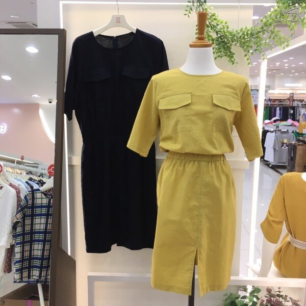 앞면의 양 주머니가 귀여운 원피스입니다:) 허리 밴딩이 들어가있으며 치마 앞 밑단의 트임이 더욱 활동성있도록 해줍니다~
