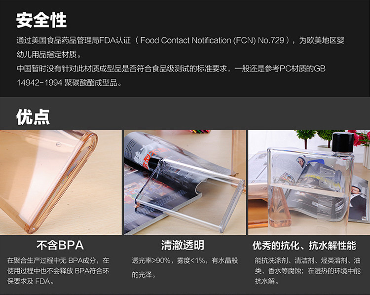 380ML: Size 19.5 * 9.5CM, the thickness of 3.5CM