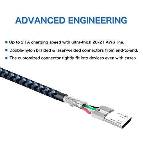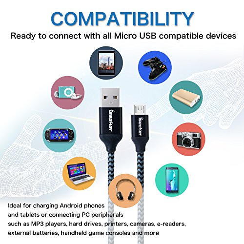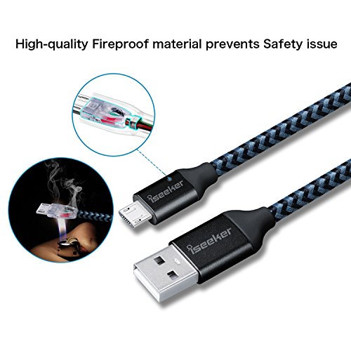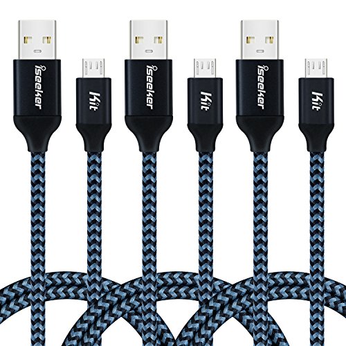 Micro USB Cord 3.3ft, iSeekerKit High Charging Speed USB 2.0 A Male to Micro Nylon Braided Data Cable with Aluminum Connectors for Samsung, HTC, Android and more[3 pack]
