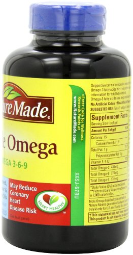 -. Binding : Health and Beauty -. Brand : Nature Made -. Label : Nature Made -. Manufacturer : Nature Made -. NumberOfItems : 1 -. ProductGroup : Health and Beauty -. ProductTypeName : HEALTH_PERSONAL_CARE -. Publisher : Nature Made -. Studio : Nature Made -. Title : Nature Made Triple Omega 3-6-9