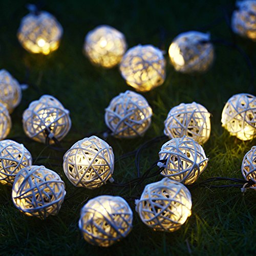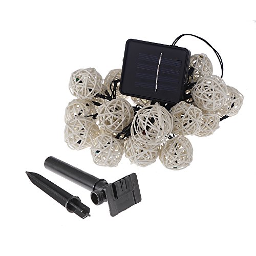 LEAZEAL 20 LED Rattan Ball String Light Solar Powered Warm White Outdoor Lights for Christmas, Wedding, Party