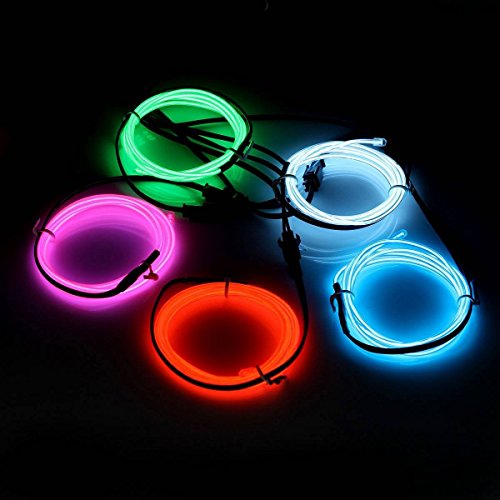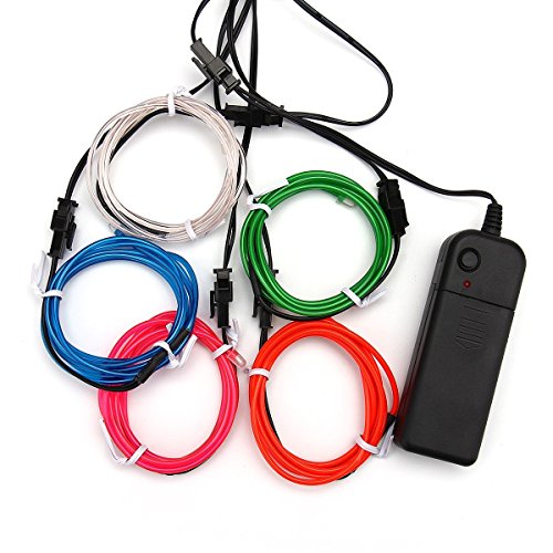 ASOCEA 5 X 1 Metre Five Colors Neon Light El Wire with Battery Pack for Christmas Party Decoration, White/Blue/Red/Green/Pink
