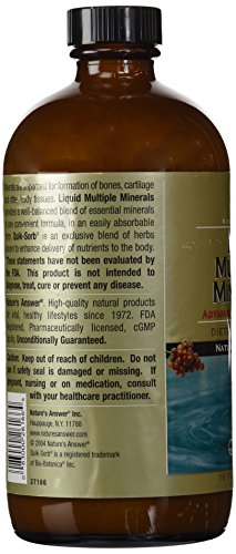 -. Binding : Health and Beauty -. Brand : Nature's Answer -. EAN : 0083000261664 -. Feature : Advanced mineral support / With quik-sorb / Dietary supplement -. IsAdultProduct : 0 -. IsAutographed : 0 -. IsMemorabilia : 0 -. Label : Nature's Answer -. LegalDisclaimer : Actual product packaging and materials may contain more and different information than what is shown on our website. We recommend that you do not rely solely on the information presented and that you always read labels, warnings, and directions before using or consuming a product. Please see our full disclaimer below. -. Manufacturer : Nature's Answer -. Model : 26166 -. MPN : 412FF -. NumberOfItems : 1 -. PackageQuantity : 1 -. PartNumber : 412FF -. ProductGroup : Health and Beauty -. ProductTypeName : HEALTH_PERSONAL_CARE -. PublicationDate : 2010-11-24 -. Publisher : Nature's Answer -. Size : 16 Fl Oz -. Studio : Nature's Answer -. Title : Nature's Answer Liquid Multiple Minerals, 16-Fluid Ounces -. UPC : 129600299604