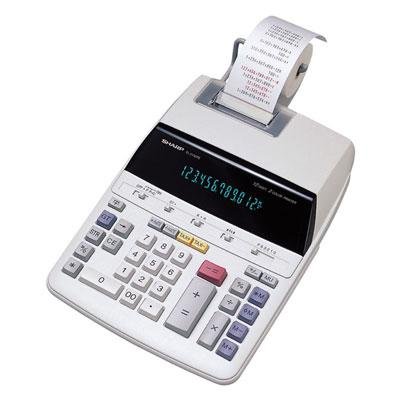 -. Feature : 12-digit LCD display AC operation / Tax key, 4-key memory, grand total / Two-color desktop P.R.Inting calculator / PC touch keyboard, new modern design