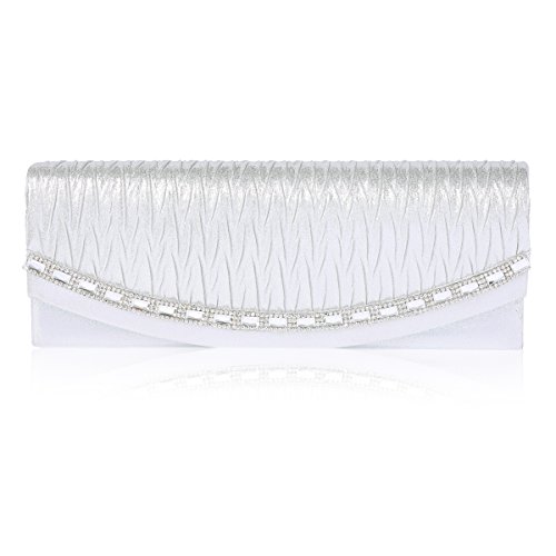 Damara Womens Convex Pleated Flap PU Clutch Evening Party Bag,Silver