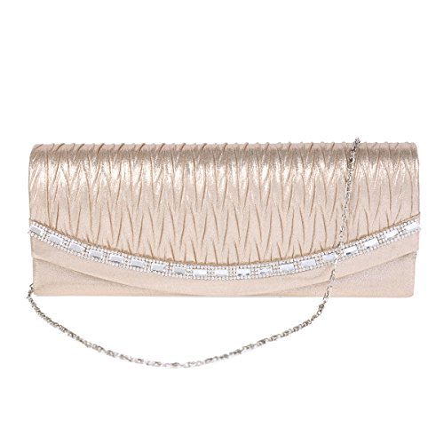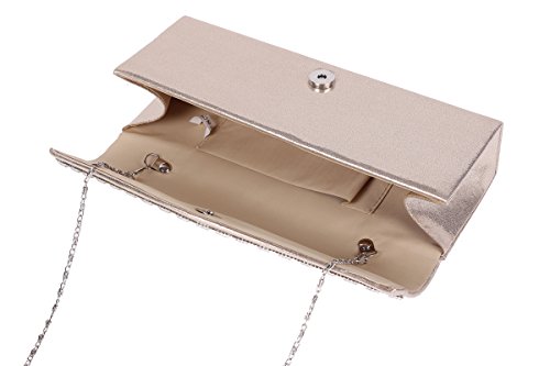 Carry a few essential items for a formal event or a social occasion in this glitzy rectangular flap clutch.The evening clutch features sparkling rhinestone and has a structured shape with a pleated flap front design and a secure snap closure.This sparkling little clutch offers just enough room for your cell phone, lipstick,and one or two other small accessories.?An interior slide pocket offers storage for your cash,credit cards, and photo ID while a chain offers a versatile way to carry this clutch when you want to have your hands free to meet and greet friends.Purse measurement is app 26x10x5cm (8.66x3.93 x1.77 in), chain is app 120cm(47.24inch). NOTE:Different people with different measurement,so it may exist 2-3cm measurement errors.Hope you will not mind it.