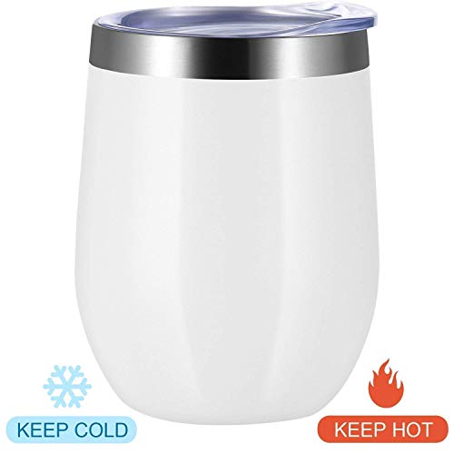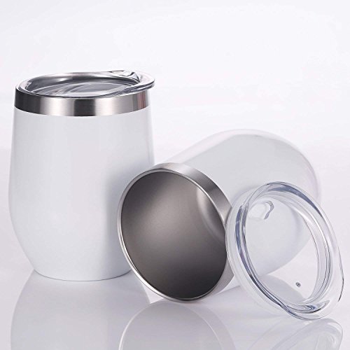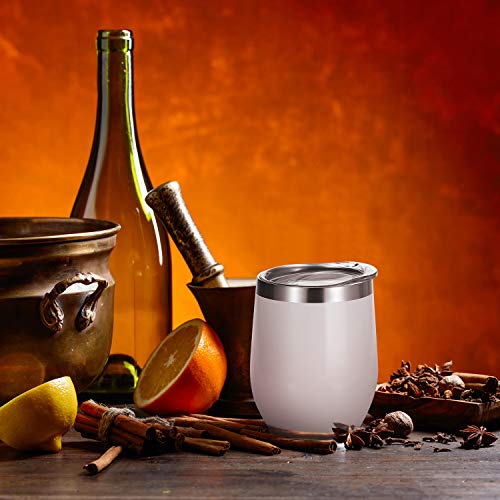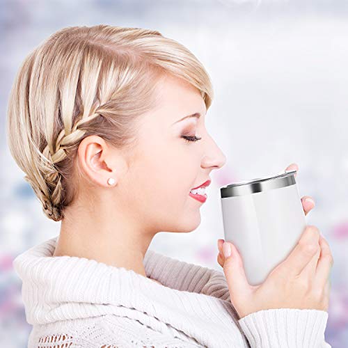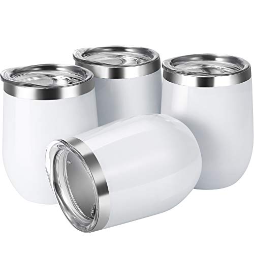 4 Pack 12 oz unbreakable triple-Insulated Stemless wine tumbler, stainless steel wine glass wine cup with lids, suitable drink-ware glasses for wine, coffee, drinks, champagne, cocktails and beer (white)