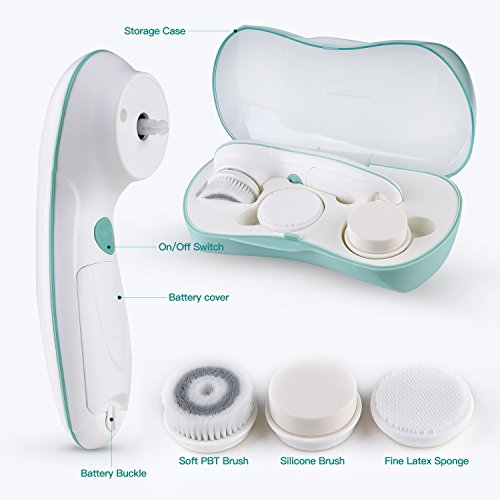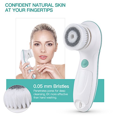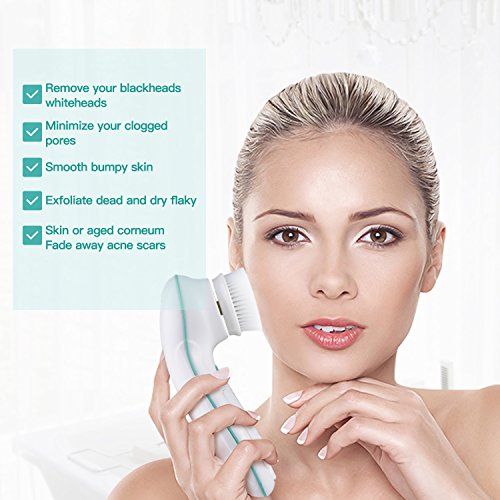 GUGULE Waterproof Facial Cleansing Brush, Face and Body Brush, Cleansing System Spin Brush Set with 3 Exfoliating Brush Heads for Gentle Exfoliation and...