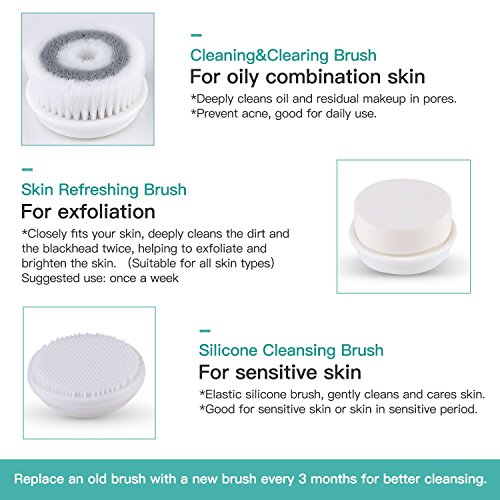 - ❤ Perfect configuration: GUGULE Waterproof differentiated bi-facial Cleansing Spin Brush has three Brush head (including 1 silicone head) and a protective luggage, a Waterproof two-speed motor can help you complete all the Facial cleaning needs. Meanwhile, it can make you more convenient to carry.