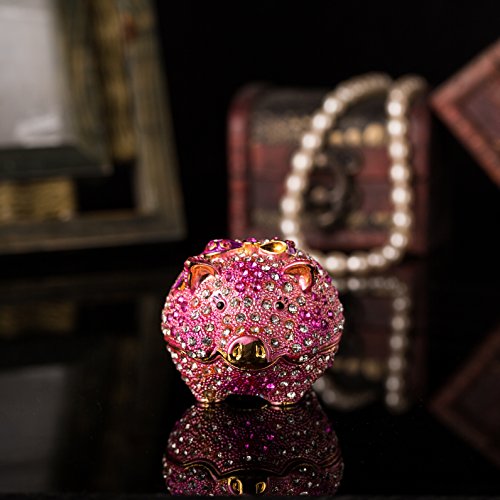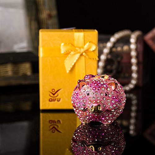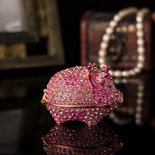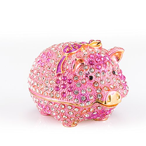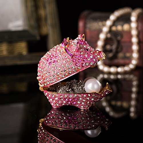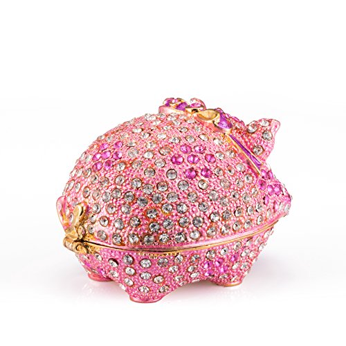 QIFU Hand Painted Enameled Cute Pig Decorative Hinged Jewelry Trinket Box Unique Gift For Home Decor