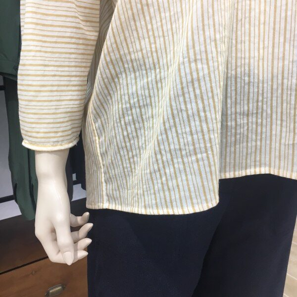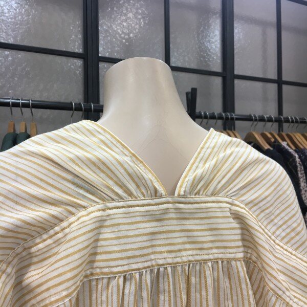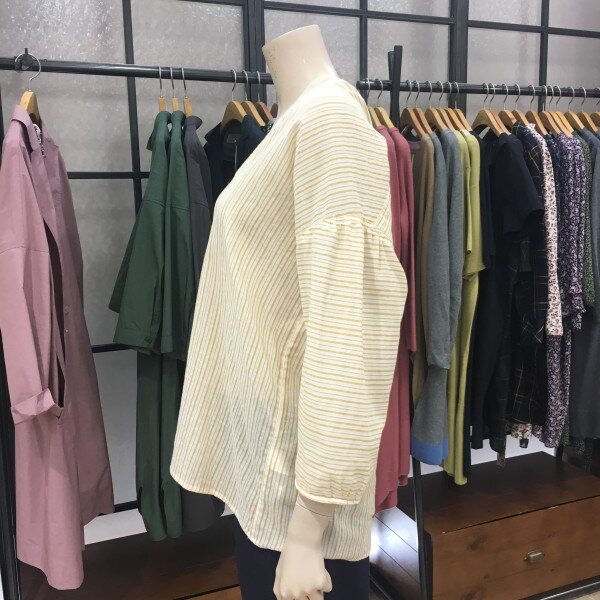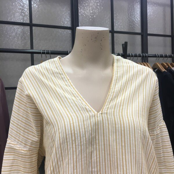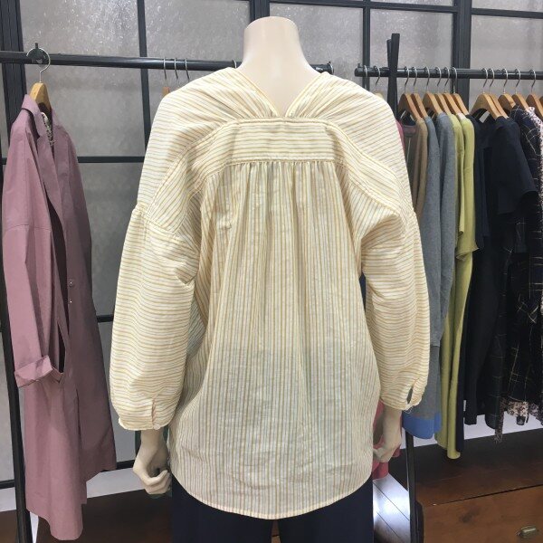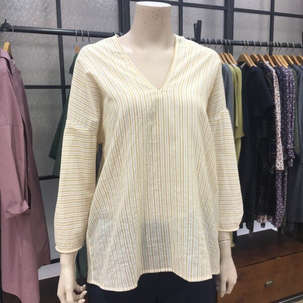 캐주얼하면서도 섹시한 V넥 블라우스 입니다. 쇄골부분 노출이 있기때문에 매력적인 연출을 하기 좋은 셔츠에요. 전체적으로 루즈하게 핏 되지만 과하지 않은 루즈함이라 팬츠와 다양하게 매치되구요.핀스트라이프 디테일이 꾸민 듯 안 꾸민듯 자연스러운 데일리룩으로 연출해주어요. 앞뒤 V넥파임과 바디 비침이 약간 있기 때문에 은근한 섹시미가 느껴집니다 ~ 색감은 오버되지 않은 은은한 색감으로 블라우스의 디자인을 살려주었어요. 비침이 싫으신 분은 이너나시 착용해주세요^^ 총장길이는 55사이즈 기준으로 뒷파임부분기준 60cm/어깨선부분기준 75cm입니다.