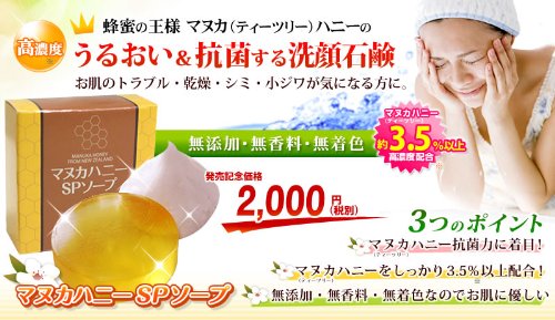 Manuka Honey SP Soap is a cleansing soap with plenty of MGO400 + raw Manuka honey from New Zealand