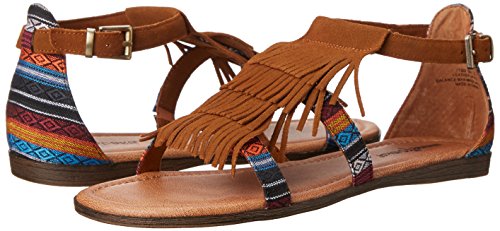Sandal with fringed vamp featuring solid heel cup and small, faux-wood wedge Ankle strap with buckle closure Textured outsole Brand : Minnetonka Item model num : Maui MPN(PartNumber) : 71302-BAZ EAN : 0887449083722 Product Dimensions(LxWxH) : 34x21x16cm ; 771 g