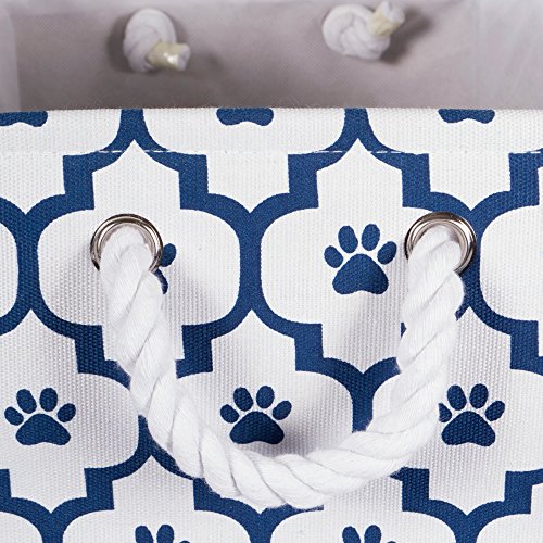 Solid Construction Sturdily constructed these storage bins are up to the task of being carried to-and-fro, used to transport the belongings for your lovely pets - these bins will handle it. These storage bins feature a durable fabric exterior and interior that is easily wiped clean. The stylish metal bone-shaped handles provide an easy grip. When not in use, simply collapse the sides and store bin flat. The material and construction provides a long lasting bin that you can use over and over again.
