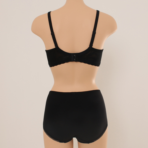 잎사귀 문양이 아치 라인과 세련되게 믹스된 일자 스칼럽의 레이스에 망을 접어 매칭한 디자인의 풀컵 스타일로,부드럽고 편안한 감촉의 사와무라 직조 패드를 3쪽 절 개 방식을 사용하여 가슴을 보다 자연스럽고 입체적으 로 보이도록 설계하였고, 밖으로 드러나는 컵 레이스도 다트 라인을 사용하여 이음선이 도드라지지 않고 매끄 럽게 피트 되도록 하였다.