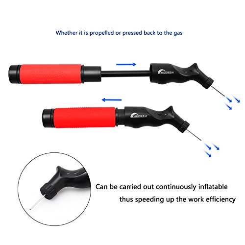 FAST SPEED INFLATION: Dual-action design let the air comes out of the nozzle both when pulling or pushing the lever, fast than normal hand air pump