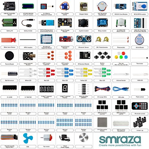 Smraza UNO Complete Ultimate Computer Kit is 100% fully compatible with Arduino, it come with the detailed tutorial documentations for you to make more creative projects by hands-on way.