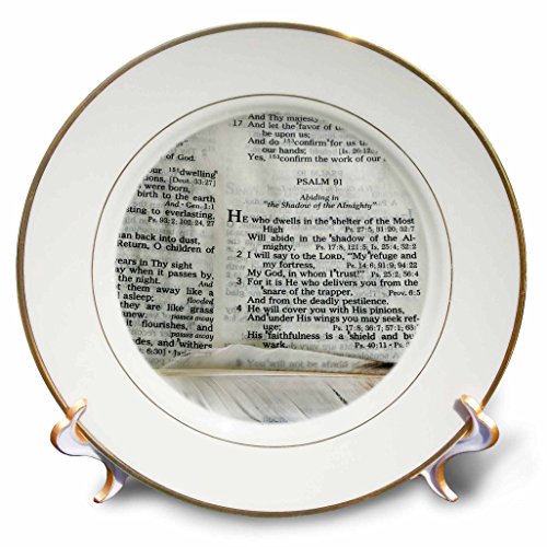 3dRose cp_44028_1 Photograph of a Bible Open to Psalm 91 and Marked with a Large Feather Plate, 8-Inch, Porcelain
