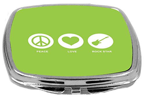 Rikki Knight Peace Love Rock Star Design Compact Mirror, Lime Green, 2 Ounce