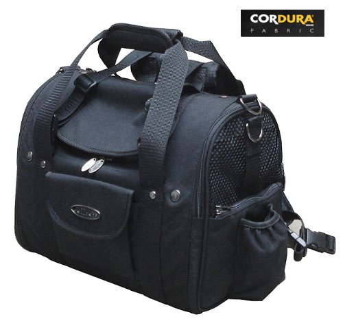 -. Feature : Semi-rigid plastic panels give stability and flexibility for airline travel / Safety - Zippers with auto-lock device, an inside security leash and car seat attachment feature / Discreet design with durable Cordura(R) fabric and black color interior / Climate and odor control compartment and feature for small pet water bottle / Leak proof and machine washable floor trap set with foam pad for comfort