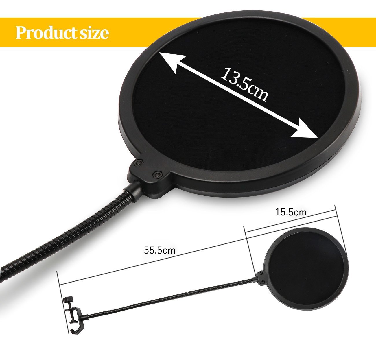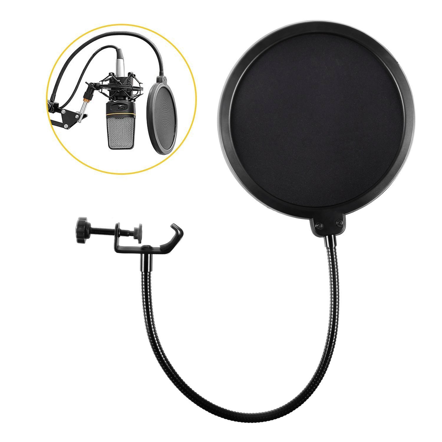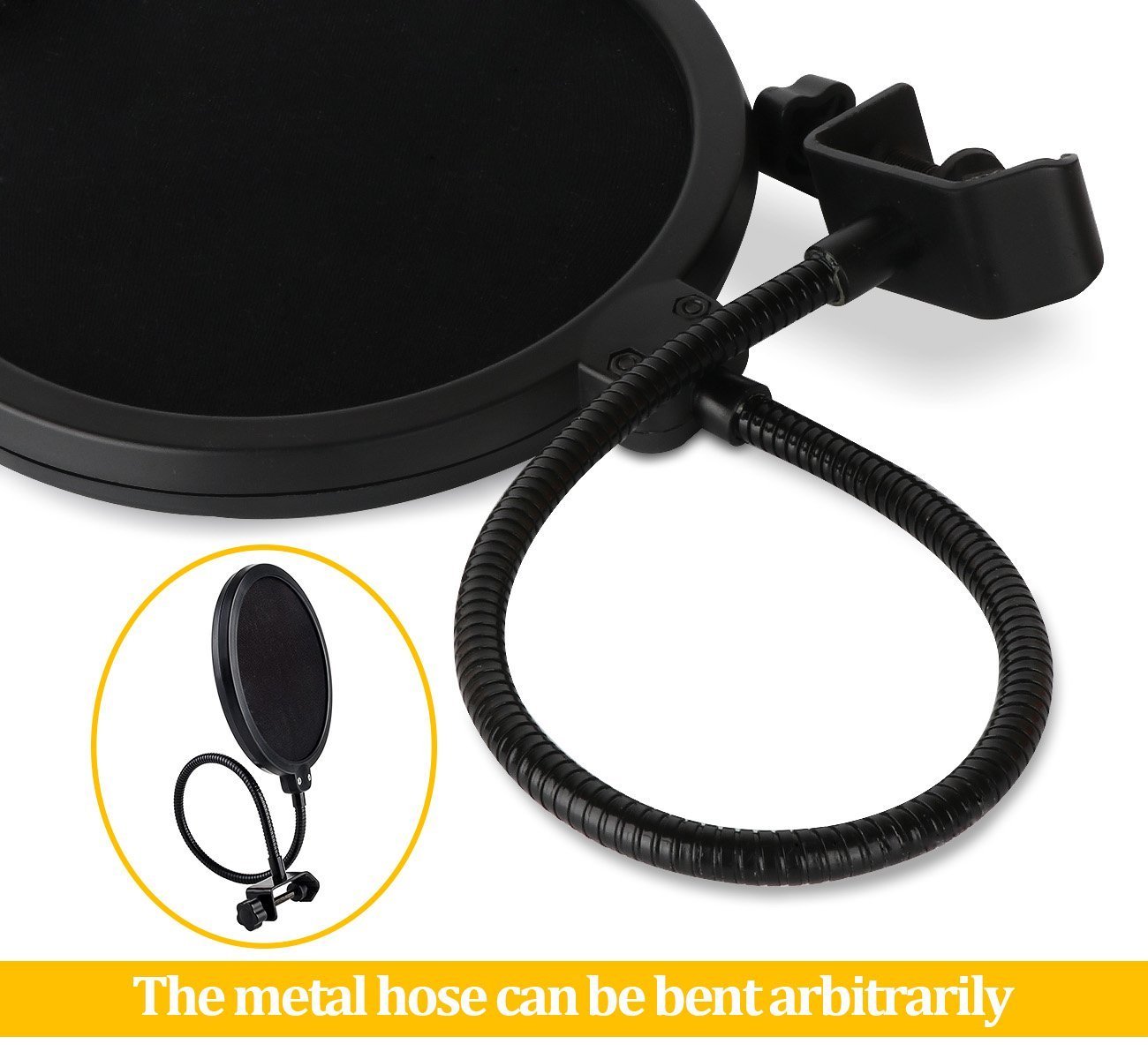 (1) Adjust the screws on the clamp section and attach the pop screen to the microphone stand or the like.