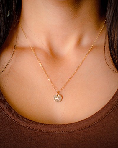 DIMENSIONS: Pendant Diameter - 3/8'' (10 mm) Chain: 16" (40.6 cm) or 18" (45.6 cm), adjustable, spring ring clasp. This is a small pendant. For people who like tiny dainty jewelry. (The lotus charm on the model is just to show size/scale.)