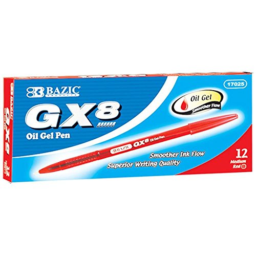BAZIC GX-8 Red Oil-Gel Ink Pen, 12/Box