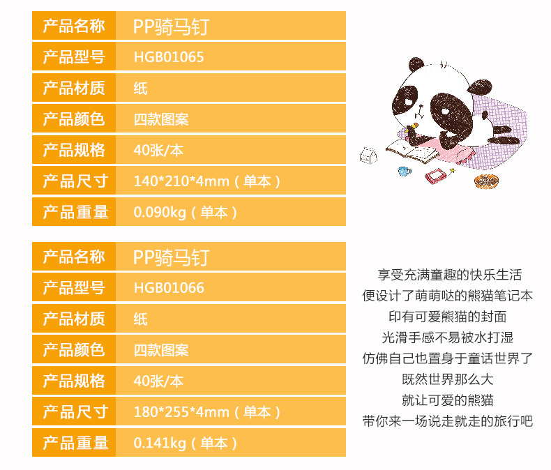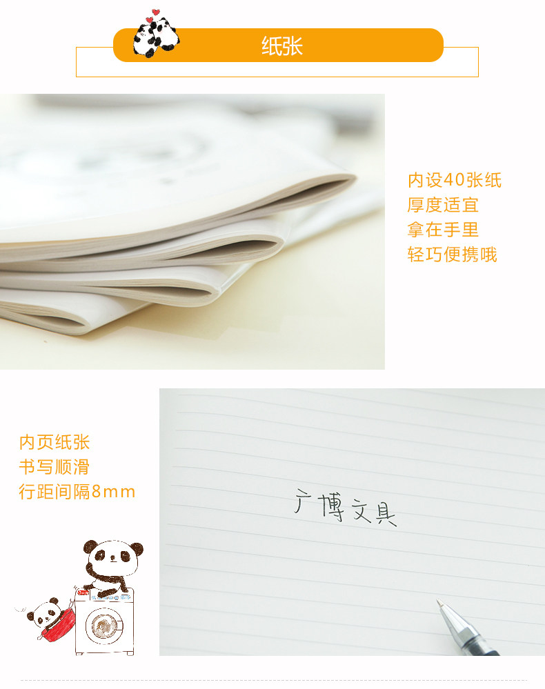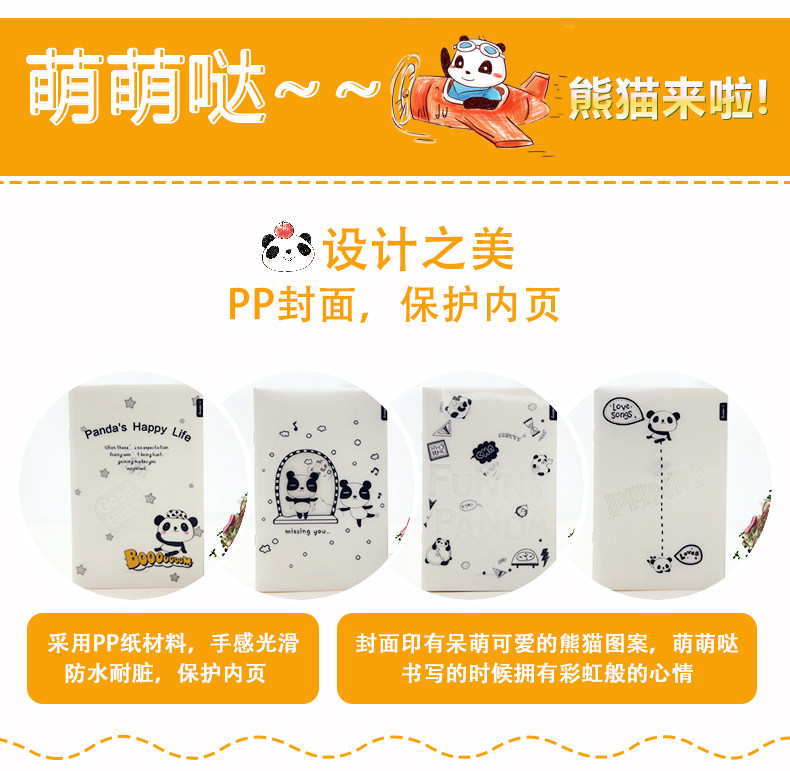 A5/B5熊猫日记本子可爱学生文具pp骑马钉40页笔记本软抄本