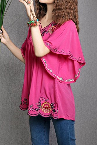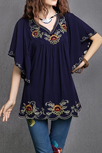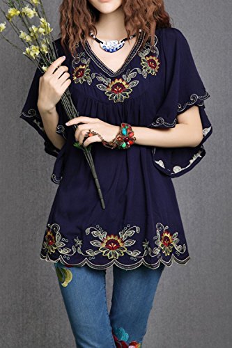 -. Title : Asher New 2016 Floral Embroidered Butterfly Sleeve Wrap Peasant Blouse
